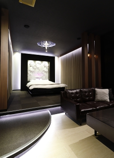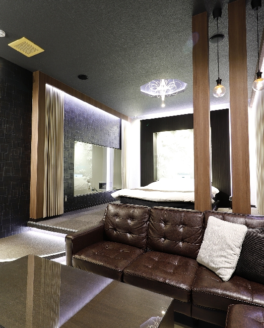 - 201号室のデザインは,高級シティホテルのスイートルームのような上質感が漂う,モダン&クールな印象のインテリア。