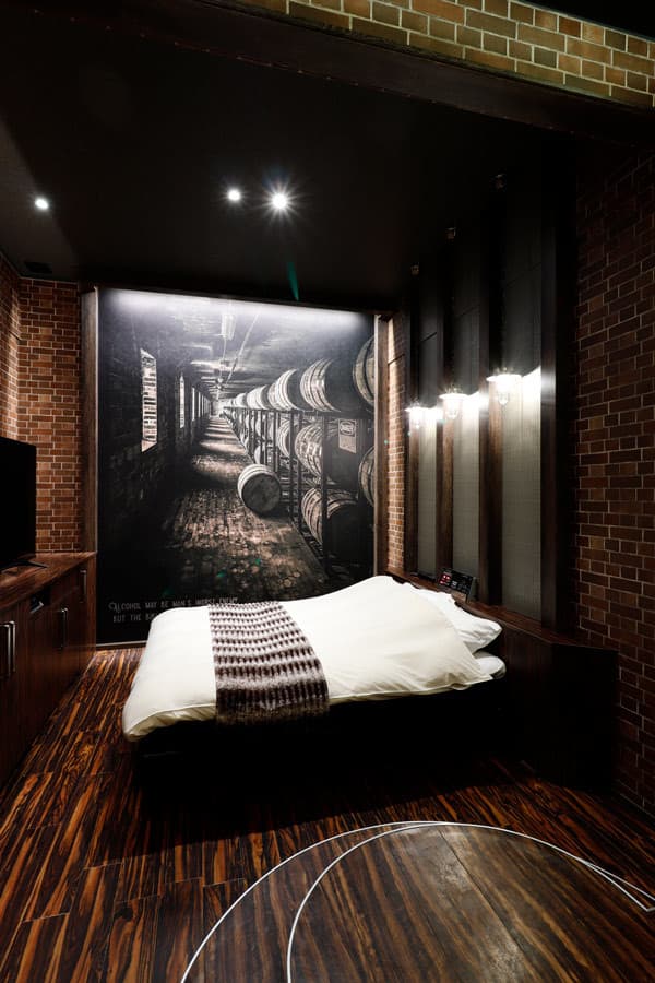 - フォトジェニックな熟成中の「樽」を映したビッグサイズのフォト壁紙が主役のお部屋です。