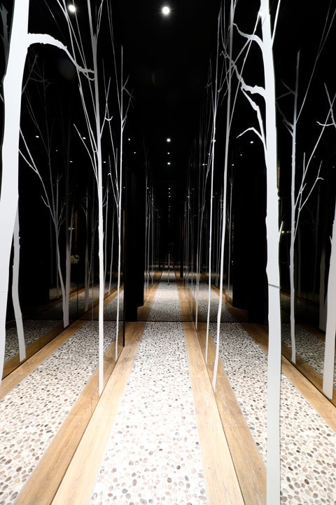 - 実は4面ミラー貼りの仕掛けによるものなのですが、まるで夜の白樺の林を歩いているかのような不思議感覚!これは写真ではお伝えできません・・・!是非ご体感ください!