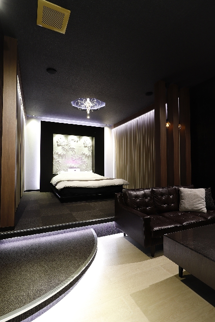 - 201号室のデザインは,高級シティホテルのスイートルームのような上質感が漂う,モダン&クールな印象のインテリア。