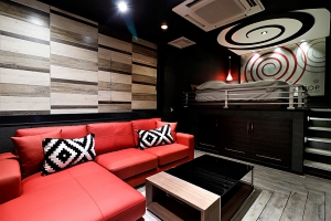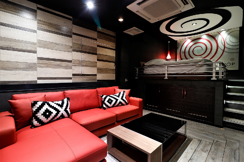 シックなモノトーンカラーに赤のアクセントを用いて、大人のため