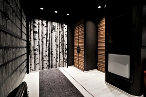感を感じる白樺のフォトクロスを壁面にアクセントとして使用